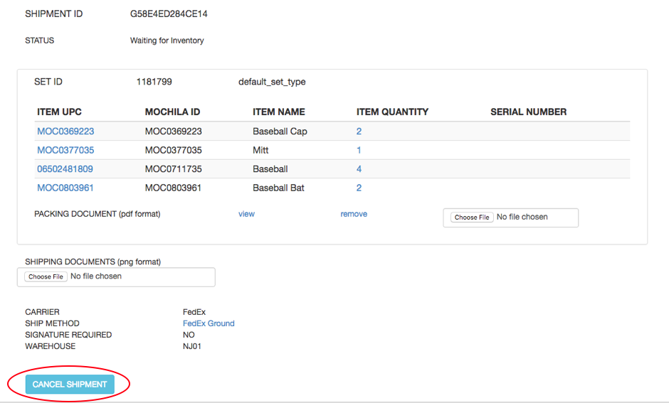 3. Cancel the shipment. You may also cancel the shipment entirely. To do so, click on the CANCEL SHIPMENT at the bottom of the shipment detail box on the order detail page (see attachment, "Cancel Shipment").